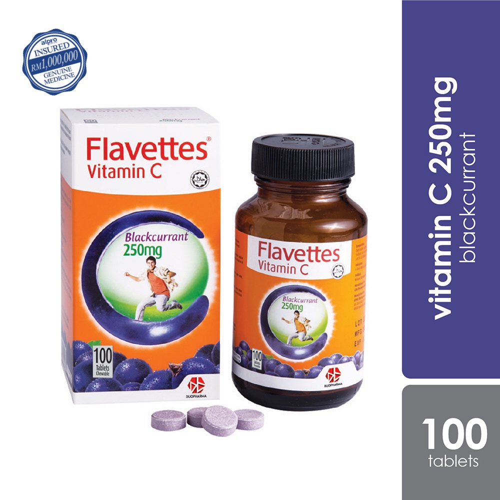 Flavettes vitamin c blackcurrant 250mg protect against immune system deficiencies and acts as antioxidants to help neutralize free radicals kebaikan flavettes vitamin c. For flavettes recommended dosage, no side affects are known.